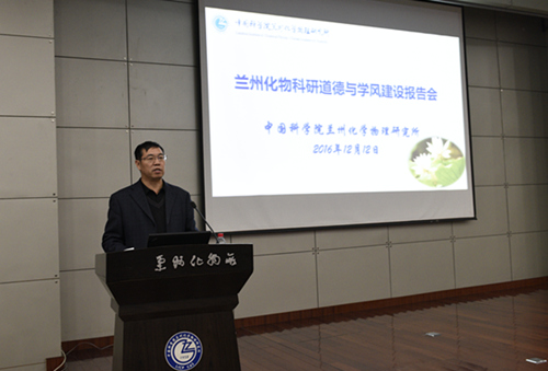 12月12日上午,中國科學院院士、中國科學院蘭州化學物理研究所學術委員會副主任、學位委員會主席劉維民研究員應邀為蘭州化物所全所青年職工和研究生作了題為《科學研究與技術創(chuàng)新——學習、交流與踐行》的專題報告。報告會由蘭州化物所副所長、所科研道德與學風建設委員會副主任師彥平主持。所紀委書記、副所長、科研道德與學風建設委員會辦公室主任張長春,研究生導師和全所青年職工、研究生等近300人參加了報告會。