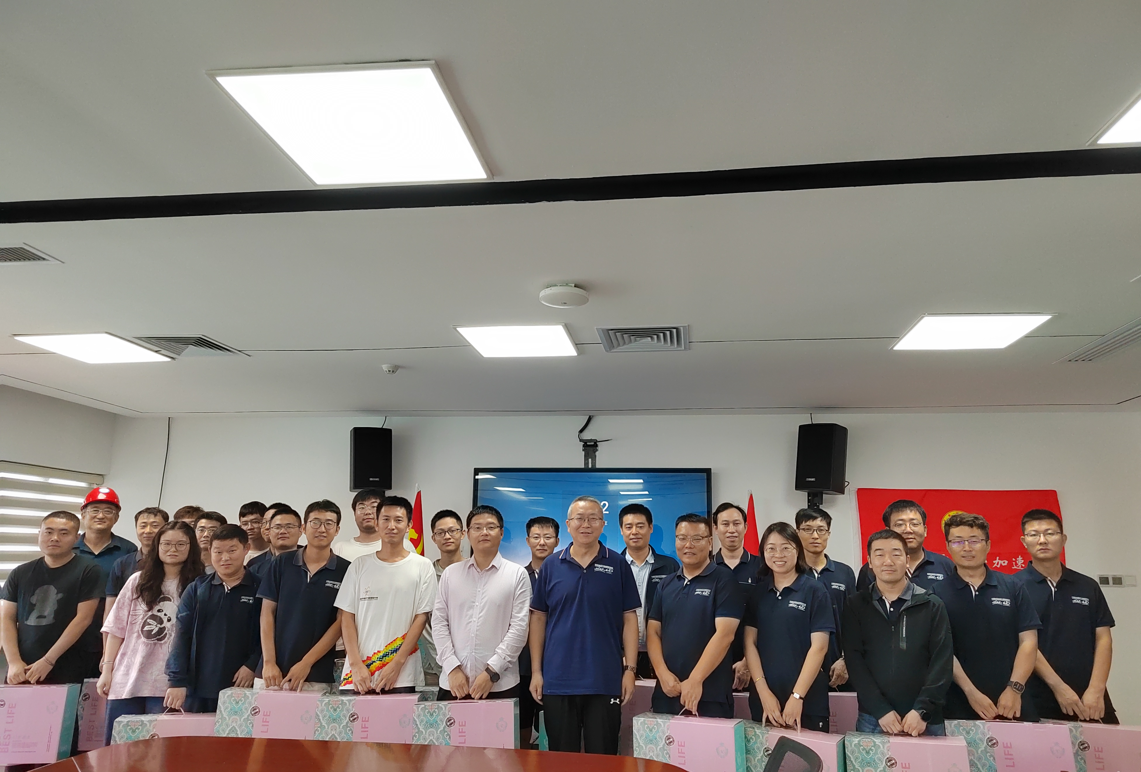 座談會(huì)后,何源代表所領(lǐng)導(dǎo)班子為大家發(fā)放了慰問品,叮囑大家異地作戰(zhàn),施工過程中必要高度重視人員安全和設(shè)備安全,做好家庭、工作平衡,遇到生活問題及時(shí)反映,多疏導(dǎo)多調(diào)節(jié),健康快樂生活,安心踏實(shí)工作。現(xiàn)場(chǎng)安裝團(tuán)隊(duì)對(duì)所領(lǐng)導(dǎo)班子的關(guān)懷表示衷心感謝,將保質(zhì)保量完成兩大科學(xué)裝置安裝調(diào)試工作。