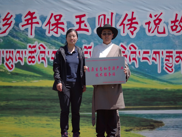 向白玉鄉(xiāng)人民政府交接“高原生態(tài)和資源產業(yè)技術服務站”牌匾