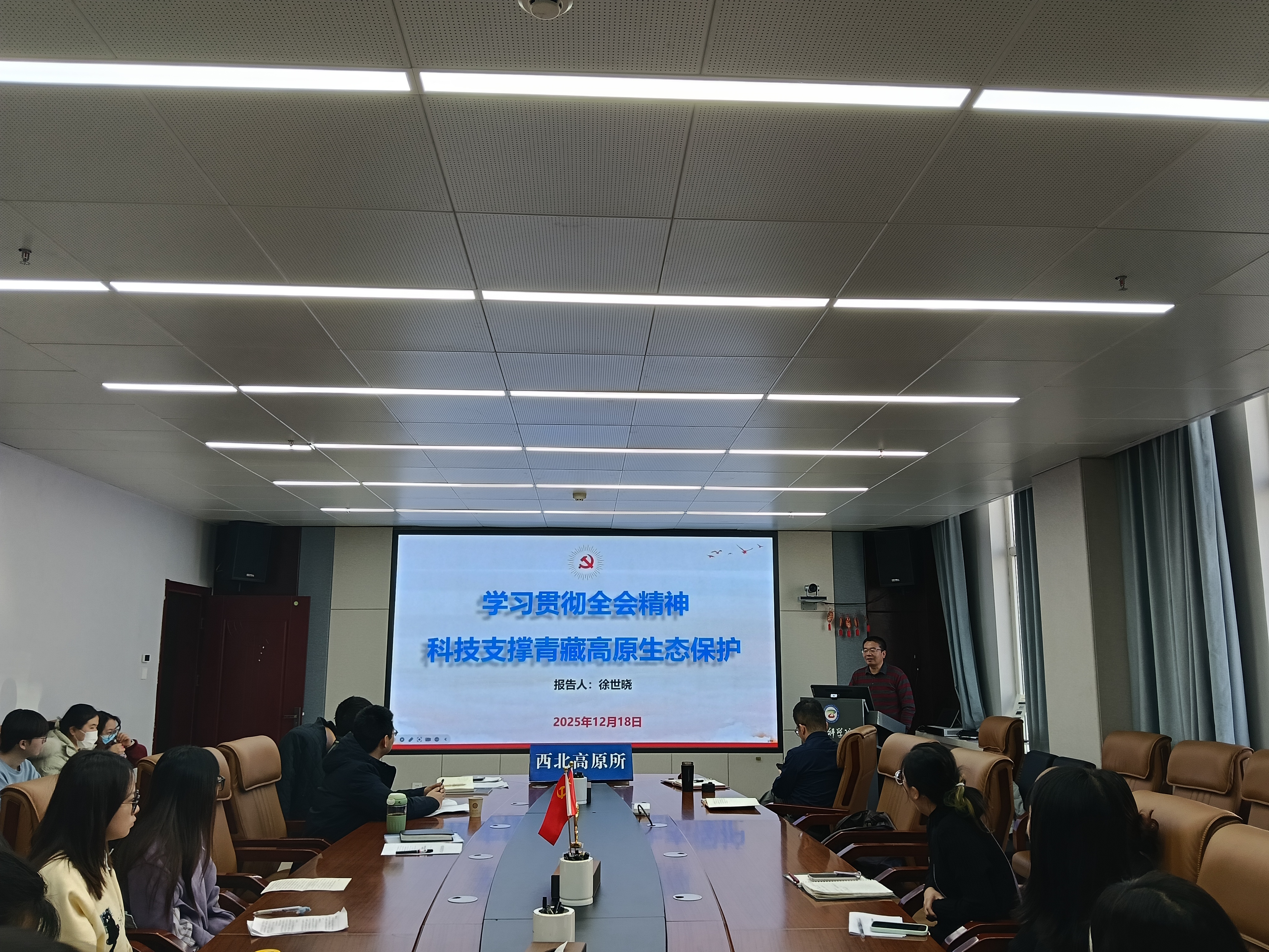 黨委委員、支部聯系人徐世曉圍繞《學習貫徹全會精神 科技支撐青藏高原生態(tài)保護》主題講授黨課。他結合二十屆四中全會精神,深入解讀了院黨組“十五五”規(guī)劃的重點科研部署,明確了青藏高原生態(tài)保護與高質量發(fā)展的方向。結合自身參與院內資環(huán)領域績效評價的實踐經歷,分享了先進單位的經驗做法,為研究所優(yōu)化科研管理、提升科研效能提供了有益借鑒。