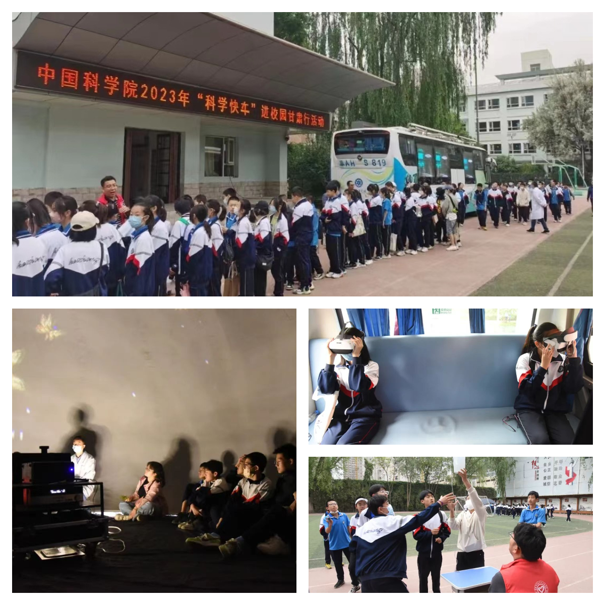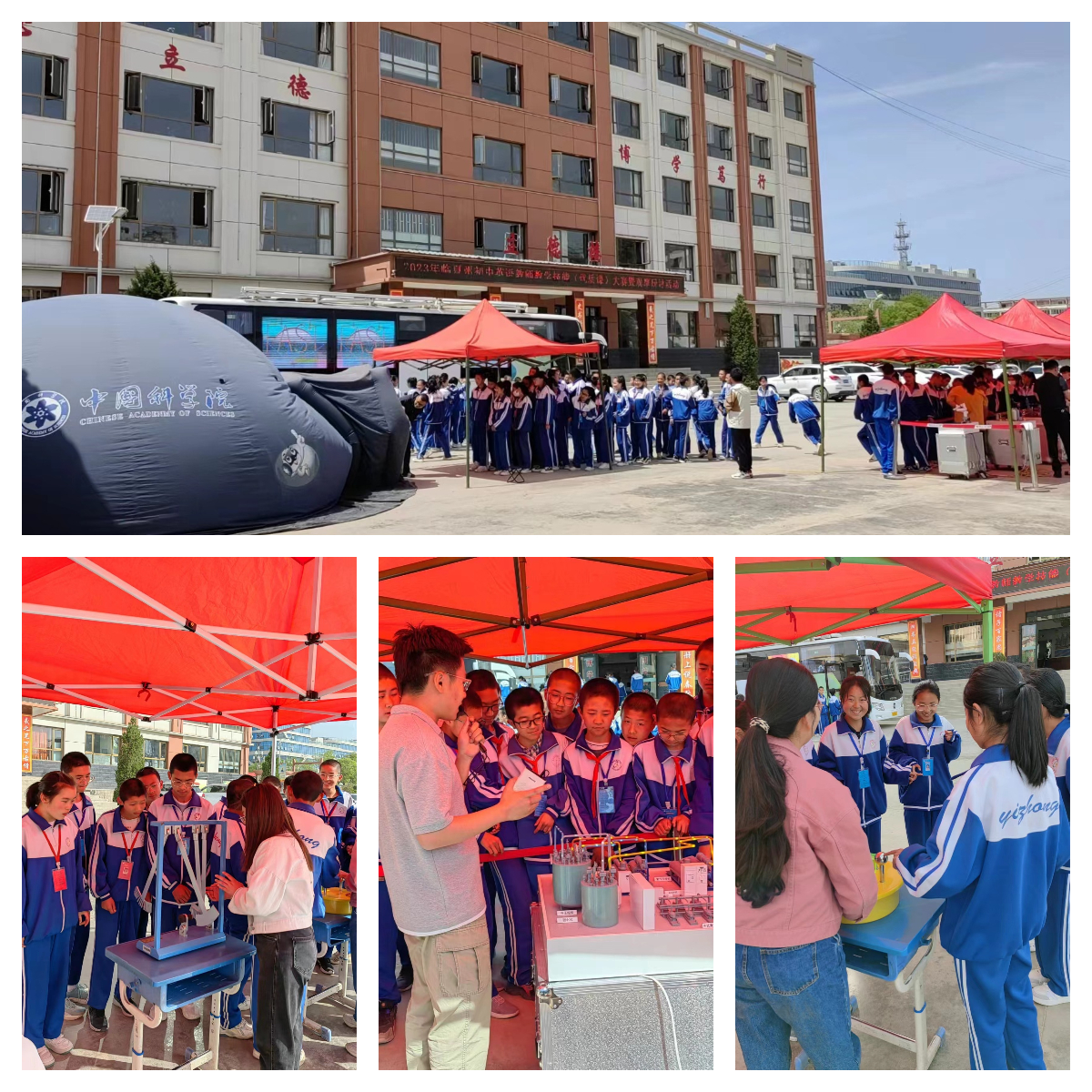 在為期七天的活動中,“科學(xué)快車”以球幕影院、車廂內(nèi)互動展廳、戶外可移動展區(qū)等多種形式向同學(xué)們展示了中科院近年來重大創(chuàng)新科技成果,通過豐富多彩的展品、利用沉浸式環(huán)境和交互式手段,讓青少年在參與和互動中體驗到神奇的科技世界:在球幕影院,360度球幕科普微電影讓同學(xué)們直觀感性體驗了科學(xué)探索太空、科學(xué)和諧自然、科學(xué)服務(wù)人類,領(lǐng)略了神奇的科技魅力,激發(fā)了偉大的科技夢想,球幕影院不時傳出孩子們的驚嘆與歡笑聲;在車廂內(nèi)互動展廳,深空、深海、深地和深藍四個領(lǐng)域的科研成果深深吸引了同學(xué)們的眼球,他們有的小聲地與身邊的伙伴交流著,有的聚精會神地閱讀展板上的介紹文字,特別是當(dāng)同學(xué)們帶上VR眼鏡時,可身臨其境的體驗“深海探險”,孩子們歡呼雀躍、意猶未盡;在戶外可移動展區(qū),通過科普志愿者的精彩講解,同學(xué)們近距離觀察了中國空間站互動模型、天地一體化量子信息通信網(wǎng)絡(luò)樣機模型、智能制造機械臂模型、大型低溫制冷裝備模型、人工合成淀粉模型和人造太陽裝置模型等近年來中科院重大創(chuàng)新成果的模型展品,并且親自體驗了“會跳高的珠子”、“磁阻尼演示儀”和“溫柔的電擊”等互動性強的科普展品,加深了對相關(guān)科學(xué)原理的認(rèn)知。