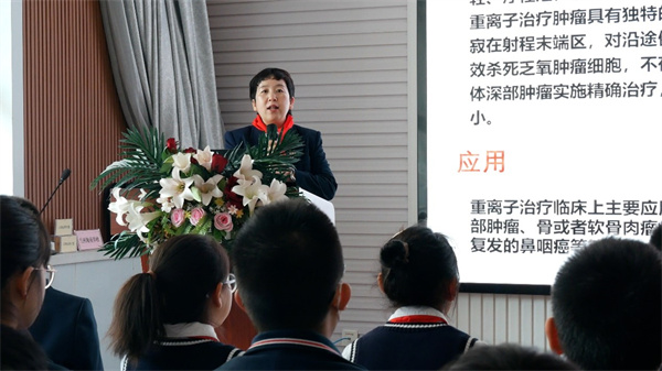 近代物理所生物醫(yī)學中心狄翠霞研究員作了題為“小離子,大應用-重離子加速人民健康”的科普報告,為同學們介紹了重離子在生命科學領域中的應用,還為孩子們帶去了“微觀世界奇遇”的顯微鏡觀測實驗。同學們通過理論學習和動手操作,生動體驗了生命科學的魅力。同時,加速器技術中心“超導磁懸浮”實驗和“電磁感應現(xiàn)象”實驗也受到了學校師生的熱烈歡迎,孩子們對可以懸浮的超導材料表現(xiàn)出了極大的興趣與好奇;通過觀察不銹鋼與磁鐵在金屬管道(不能被磁化)中不同的下降速度,真切感受電磁感應現(xiàn)象。在科學實驗互動體驗中,同學們興趣盎然,紛紛贊嘆科學的美妙與神奇,以及對于科學探索的向往。