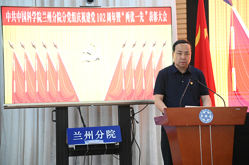 為慶祝中國(guó)共產(chǎn)黨成立102周年,深入開(kāi)展學(xué)習(xí)貫徹習(xí)近平新時(shí)代中國(guó)特色社會(huì)主義思想主題教育,中共中國(guó)科學(xué)院蘭州分院分黨組、中共中國(guó)科學(xué)院蘭州分院系統(tǒng)單位委員會(huì)于6月26日召開(kāi)慶祝中國(guó)共產(chǎn)黨成立102周年暨“兩優(yōu)一先”表彰大會(huì)。分黨組、系統(tǒng)單位黨委領(lǐng)導(dǎo)班子成員,蘭州、西寧地區(qū)院屬各單位黨委領(lǐng)導(dǎo)同志、黨辦主任,分院機(jī)關(guān)高級(jí)業(yè)務(wù)主管四級(jí)職員、各部門(mén)負(fù)責(zé)人、各黨支部(總支)書(shū)記以及受表彰的“兩優(yōu)一先”人員參加會(huì)議。會(huì)議由蘭州分院分黨組副書(shū)記、系統(tǒng)單位黨委副書(shū)記陳改學(xué)主持。