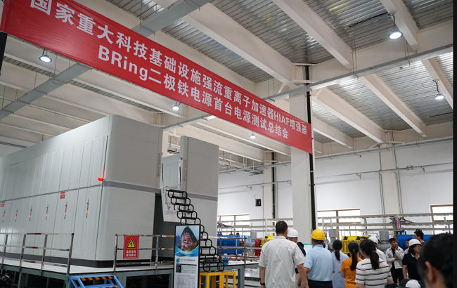 7月7日,國家重大科技基礎(chǔ)設(shè)施強(qiáng)流重離子加速器增強(qiáng)器 BRing 二極鐵電源首臺暨國家重點(diǎn)研發(fā)計劃“大科學(xué)裝置前沿研究”非諧振快上升速率磁鐵電源測試總結(jié)會在甘肅省天水市召開。由中國科學(xué)院近代物理研究所設(shè)計、天水電氣傳動研究所和四川英杰電氣有限公司為主生產(chǎn)的國際首臺大型非諧振全儲能快循環(huán)脈沖電源通過專家組現(xiàn)場測試。