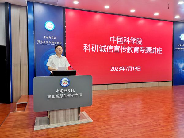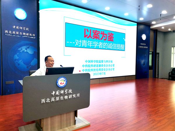 為深入開展學(xué)習(xí)貫徹習(xí)近平新時(shí)代中國特色社會(huì)主義思想主題教育,進(jìn)一步加強(qiáng)研究所科研誠信建設(shè),教育引導(dǎo)科研人員和研究生遵守科研規(guī)范、增強(qiáng)誠信自律,共同傳承中國科學(xué)院優(yōu)良傳統(tǒng)。7月19日下午,中國科學(xué)院科研誠信宣傳教育專題講座在中國科學(xué)院西北高原生物研究所舉行。中國科學(xué)院蘭州分院紀(jì)檢組組長(zhǎng)、分黨組成員、系統(tǒng)單位紀(jì)委書記吳建剛,中國科學(xué)院巡視辦整改督辦室負(fù)責(zé)人程海濤,中國科學(xué)院西北高原生物研究所和青海鹽湖研究所的所領(lǐng)導(dǎo)、科研人員、特別研究助理、在學(xué)研究生等100余人參加報(bào)告會(huì)。報(bào)告會(huì)由西北高原所所長(zhǎng)陳世龍主持。