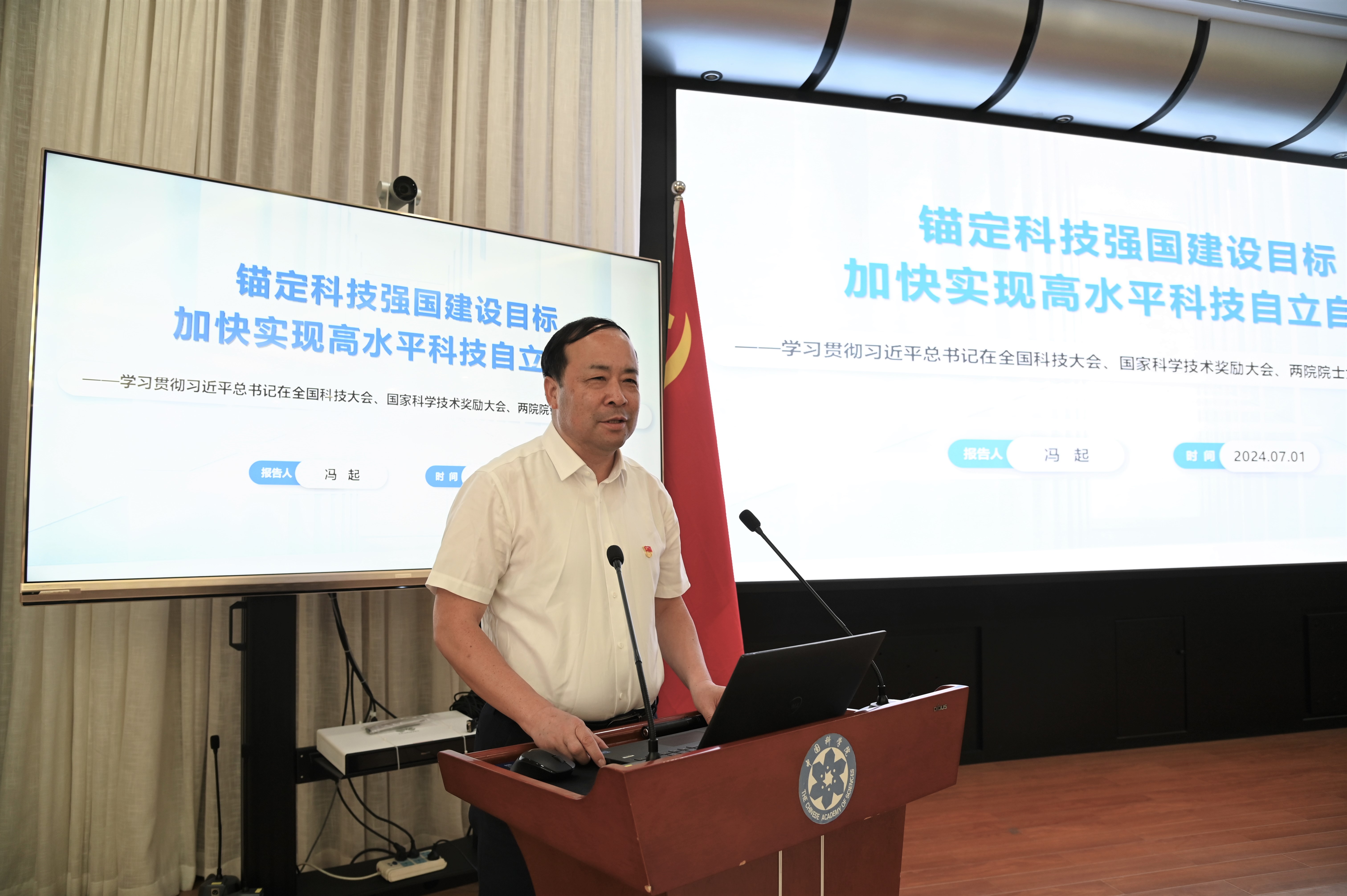 蘭州分院分黨組書記、院長馮起作《錨定科技強(qiáng)國建設(shè)目標(biāo)? 加快實現(xiàn)高水平科技自立自強(qiáng)》專題報告,傳達(dá)學(xué)習(xí)習(xí)近平總書記重要講話和全國科技大會精神。他強(qiáng)調(diào),科技興則民族興,科技強(qiáng)則國家強(qiáng),要牢記國家戰(zhàn)略科技力量職責(zé)定位,面向國家重大需求和科技前沿持續(xù)凝練與組織實施重大科技任務(wù),要深刻認(rèn)識科技的戰(zhàn)略先導(dǎo)地位和根本支撐作用,學(xué)習(xí)科技新知識、掌握科技新技能、增強(qiáng)推動科技工作新本領(lǐng),在搶占科技制高點(diǎn)新征程中貢獻(xiàn)更多力量,為科技事業(yè)發(fā)展再立新功。