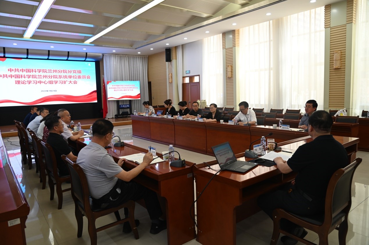 7月24日下午,中國科學(xué)院蘭州分院分黨組、蘭州分院系統(tǒng)單位黨委召開理論學(xué)習中心組學(xué)習擴大會議,傳達學(xué)習黨的二十屆三中全會精神。會議由蘭州分院分黨組書記、院長馮起主持,蘭州分院分黨組成員、系統(tǒng)單位黨委委員、分院機關(guān)黨委委員、高級業(yè)務(wù)主管四級職員,各部門負責人參加會議。