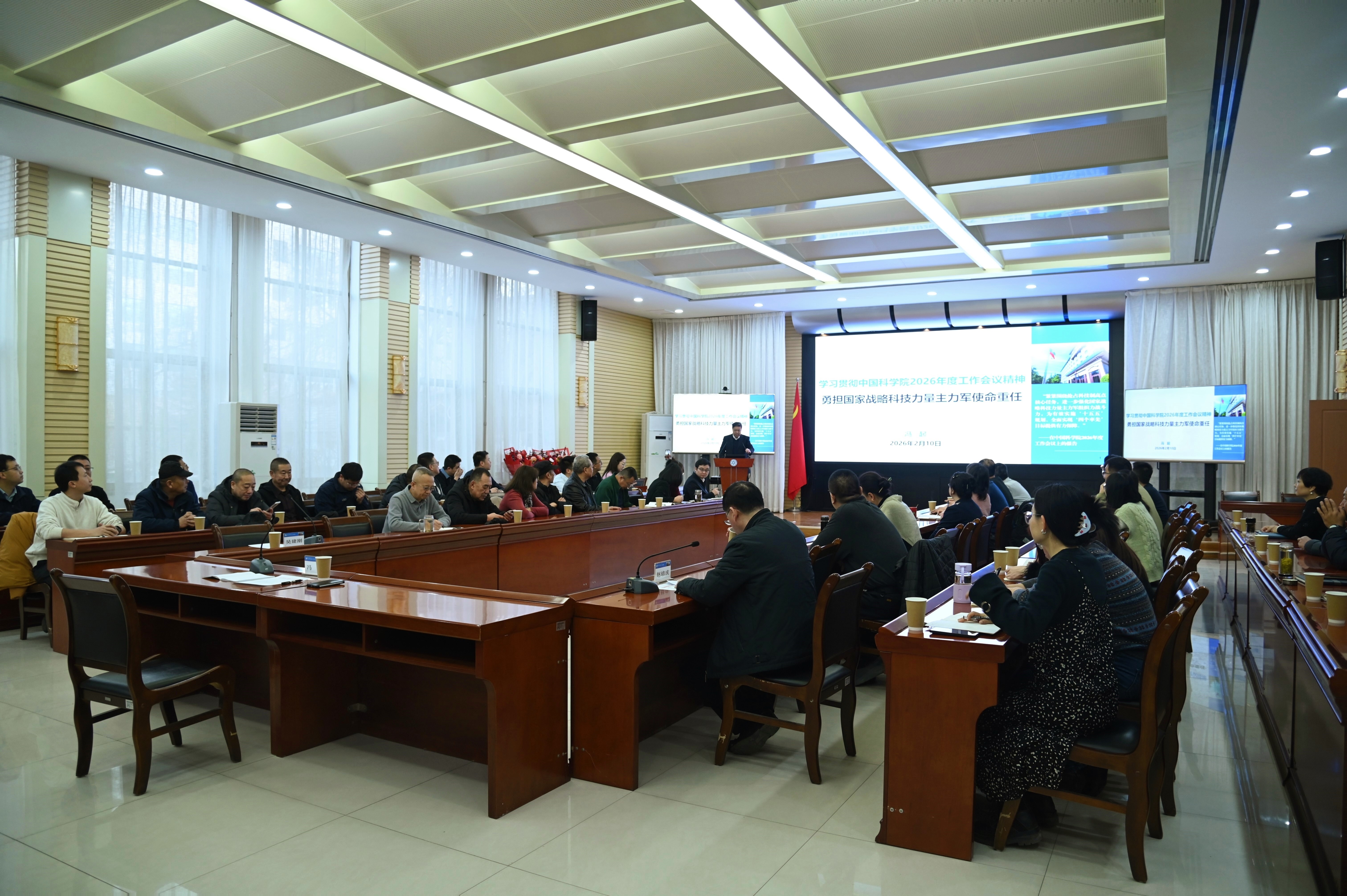 2月10日,中國科學院蘭州分院召開全體職工大會,傳達學習中國科學院2026年度工作會議精神。會議由分黨組成員、副院長趙培慶主持,蘭州分院機關全體干部職工參加會議。