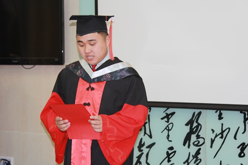 隨后,優(yōu)秀畢業(yè)生代表童超同學(xué)發(fā)言。他代表全體畢業(yè)生向在同學(xué)們學(xué)習(xí)和成長付出心血、授予智慧、賦予關(guān)懷的領(lǐng)導(dǎo)和老師們表示衷心的感謝。他說西高所是一個(gè)具有人文情懷的學(xué)術(shù)殿堂,在這里同學(xué)們得到了更多的包容、感受到了更多的溫暖、收獲到了更多的感動(dòng),作為一名西高所的研究生,同學(xué)們是幸福的、喜悅的。作為一名西高所的畢業(yè)生,是驕傲的、自豪的。這里是大家走向?qū)W術(shù)殿堂的入口、是夢(mèng)想開始的地方、是實(shí)現(xiàn)夢(mèng)想起航的地方。他代表全體畢業(yè)生莊重承諾將繼續(xù)秉承“不畏艱苦,忍辱負(fù)重,不計(jì)報(bào)酬,但求貢獻(xiàn)”的牦牛精神,在新的工作崗位上揮灑汗水,奉獻(xiàn)青春,認(rèn)真做事,踏實(shí)做人,懷揣感恩之心,不辜負(fù)西高所的培養(yǎng)和殷切希望。