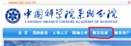登陸中國科學院蘭州分院網站(http://m.esrsoudan.com/),點擊頁面上方的“教育培訓”欄目,如圖
