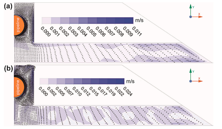 圖5?ITCPE結(jié)構(gòu)中多孔介質(zhì)層冷暖季對(duì)流?(a)暖季?(b)冷季