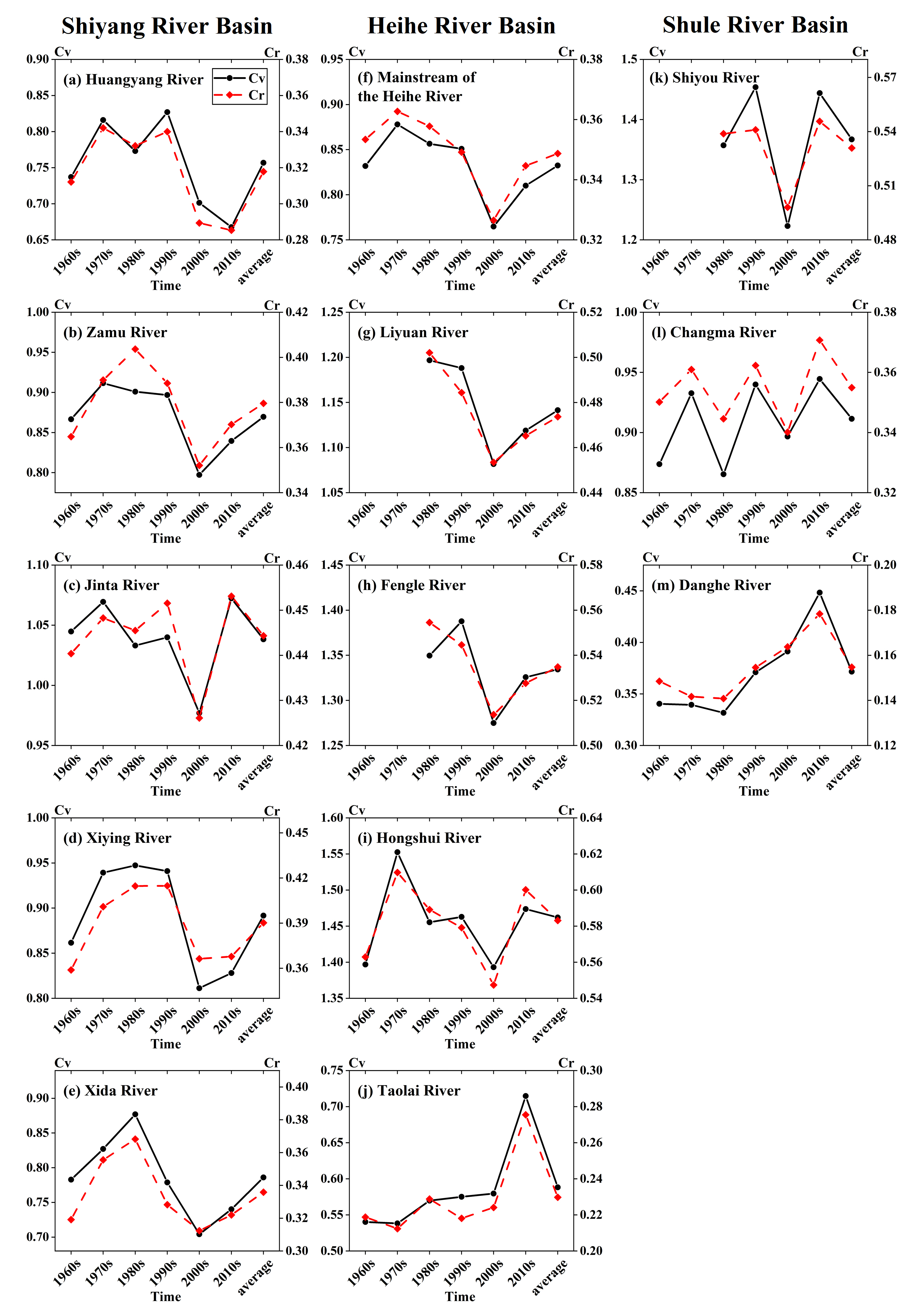 由于氣候變化、人類活動和下墊面的綜合影響,內陸河流域出山徑流的響應復雜多樣,年內分配格局具有顯著的時空異質性,部分河流枯水期徑流增加,部分河流峰值時段后移等,嚴重影響了河川徑流的發(fā)電、灌溉和生態(tài)文化價值功能,增加了水利調控工程的壓力。因此,探究出山徑流長時間序列年內分配變化和空間差異,有助于流域水資源的規(guī)劃與管理,并為未來區(qū)域水資源的變化預測提供依據(jù)。
