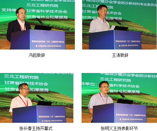 大會(huì)由中國(guó)地理學(xué)會(huì)沙漠分會(huì)、中國(guó)治沙暨沙業(yè)學(xué)會(huì)防沙新材料專業(yè)委員會(huì)、三北工程研究院共同主辦,甘肅省科學(xué)技術(shù)協(xié)會(huì)、甘肅省林業(yè)和草原局支持,中國(guó)科學(xué)院西北生態(tài)環(huán)境資源研究院、干旱區(qū)生態(tài)安全與可持續(xù)發(fā)展重點(diǎn)實(shí)驗(yàn)室、甘肅省科學(xué)技術(shù)期刊學(xué)會(huì)和《中國(guó)沙漠》編輯部共同承辦。西北研究院黨委書(shū)記張長(zhǎng)春主持開(kāi)幕式。