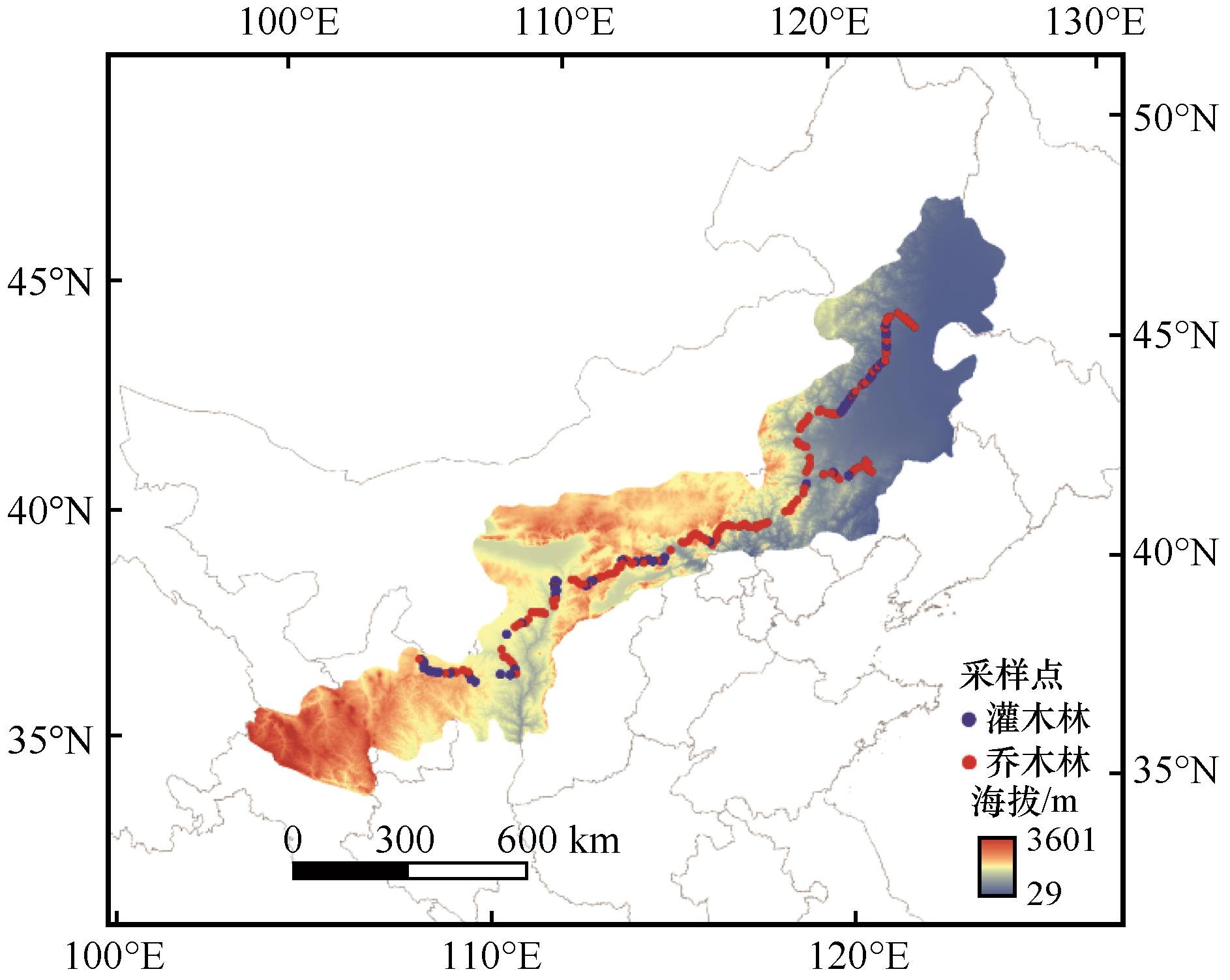 圖1 北方農(nóng)牧交錯(cuò)帶人工林樣點(diǎn)分布