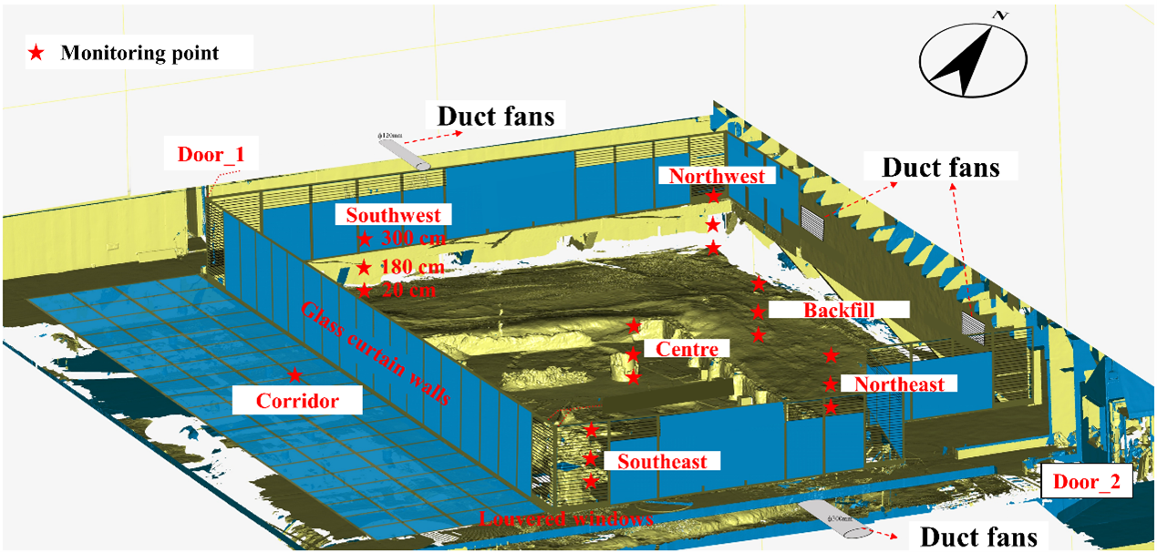 為避免這些問(wèn)題,在甘肅省文物局和甘肅大地灣文物保護(hù)研究所支持下,由敦煌研究院和中國(guó)科學(xué)院西北生態(tài)環(huán)境資源研究院組成的研究團(tuán)隊(duì),歷時(shí)6年,通過(guò)在博物館內(nèi)部開(kāi)展多點(diǎn)加密環(huán)境監(jiān)測(cè)、建立三維數(shù)值模型分析氣流和水汽運(yùn)移過(guò)程等方法,采取安裝保護(hù)幕墻、增加通風(fēng)設(shè)施、替換百葉窗等手段,不斷優(yōu)化保護(hù)措施位置和數(shù)量,最終使遺址內(nèi)相對(duì)濕度基本維持在70%左右,空氣對(duì)流通暢,極大改善了遺址博物館內(nèi)文物的賦存環(huán)境。