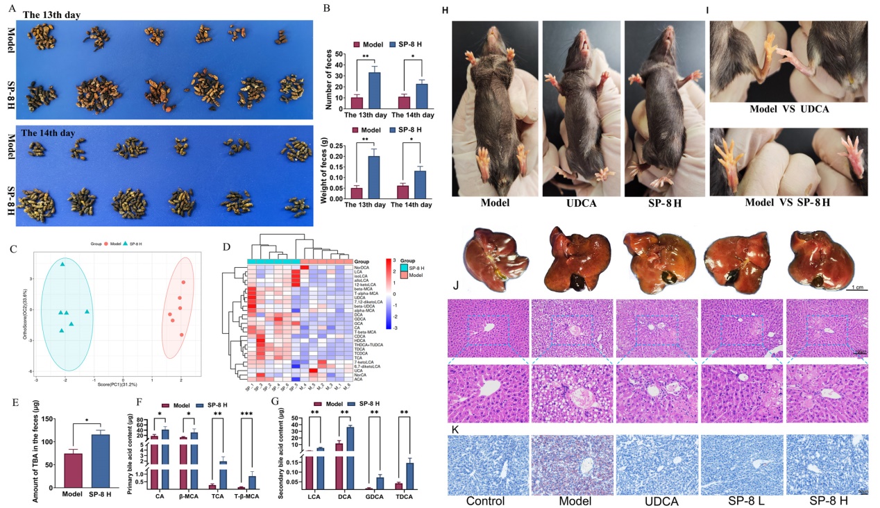 膽汁淤積性肝病(CLD)是一種復(fù)雜的肝膽疾病,由肝細(xì)胞水平的膽汁形成缺陷或膽管水平的膽汁分泌和流動(dòng)受損引起。根據(jù)膽汁淤積的不同部位,可分為肝內(nèi)膽汁淤積和肝外膽汁淤積。其共同特點(diǎn)是肝細(xì)胞內(nèi)膽汁酸(BAs)等有毒物質(zhì)的過(guò)度積累引起膽汁淤積性肝損傷。持續(xù)性膽汁淤積可進(jìn)一步誘導(dǎo)氧化應(yīng)激和炎癥信號(hào)反應(yīng),最終導(dǎo)致肝纖維化或肝細(xì)胞壞死。近年來(lái),全球膽汁淤積癥的發(fā)病率逐年上升,尤其是在兒童、青少年和婦女中高發(fā)。目前,我國(guó)仍然缺少具有自主知識(shí)產(chǎn)權(quán)的高效的治療CLD的藥物。臨床上治療一直依賴美國(guó)FDA認(rèn)證的熊去氧膽酸和奧貝膽酸,但它們的有效率不足50%,副作用明顯且價(jià)格昂貴。