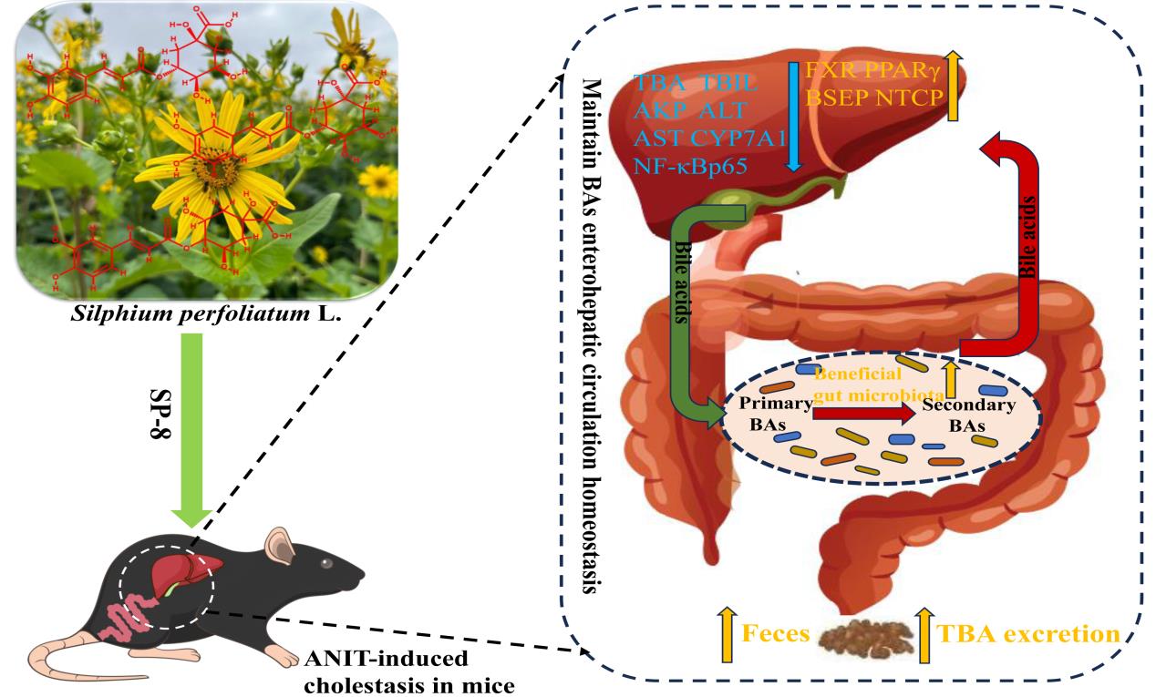 中國(guó)科學(xué)院西北高原生物研究所高原藥用資源生態(tài)保護(hù)與繁育研究團(tuán)隊(duì)從一種傳統(tǒng)藥材中篩選得到咖啡??鼘幩峄钚越M份,對(duì)CLD具有顯著的治療效果。該組份不僅能夠通過(guò)調(diào)控FXR信號(hào)通路,減少BAs的合成,而且能夠通過(guò)促進(jìn)BAs的肝腸循化,加速有害次級(jí)膽汁酸通過(guò)糞便排出體外,同時(shí)具有極強(qiáng)的抗炎活性,對(duì)膽汁淤積引起的肝臟損傷具有極強(qiáng)的保護(hù)和治療作用。該研究全面證實(shí)了咖啡??鼘幩峄钚越M份對(duì)膽汁淤積癥的治療效果并闡明了其作用機(jī)制,證實(shí)該組份具有很好的藥物開發(fā)潛力。