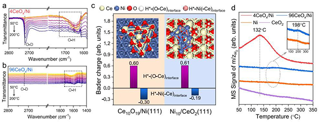 圖4. CeOx/Ni催化劑促進Hδ?物種的形成及穩(wěn)定