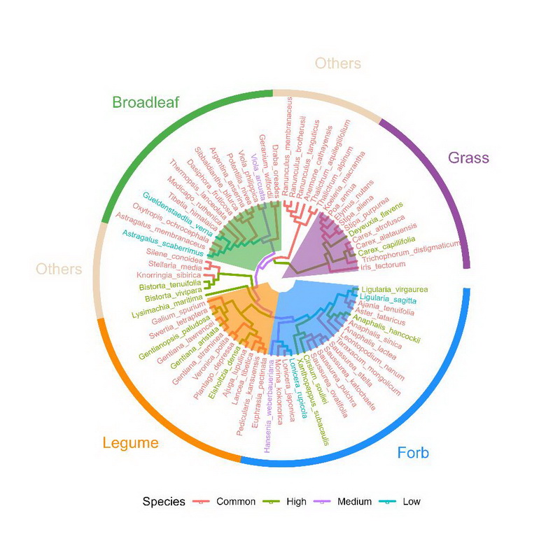 高寒草甸植物群落系統(tǒng)發(fā)育樹