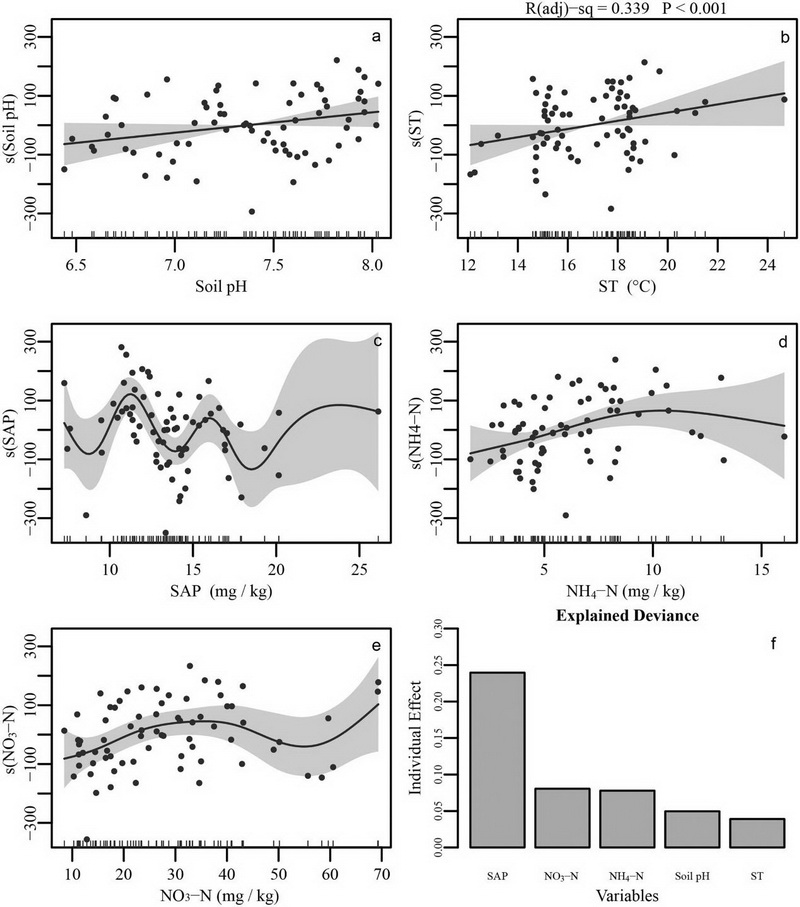 使用gam.hp分解土壤因素對植物群落系統(tǒng)發(fā)育多樣性的影響