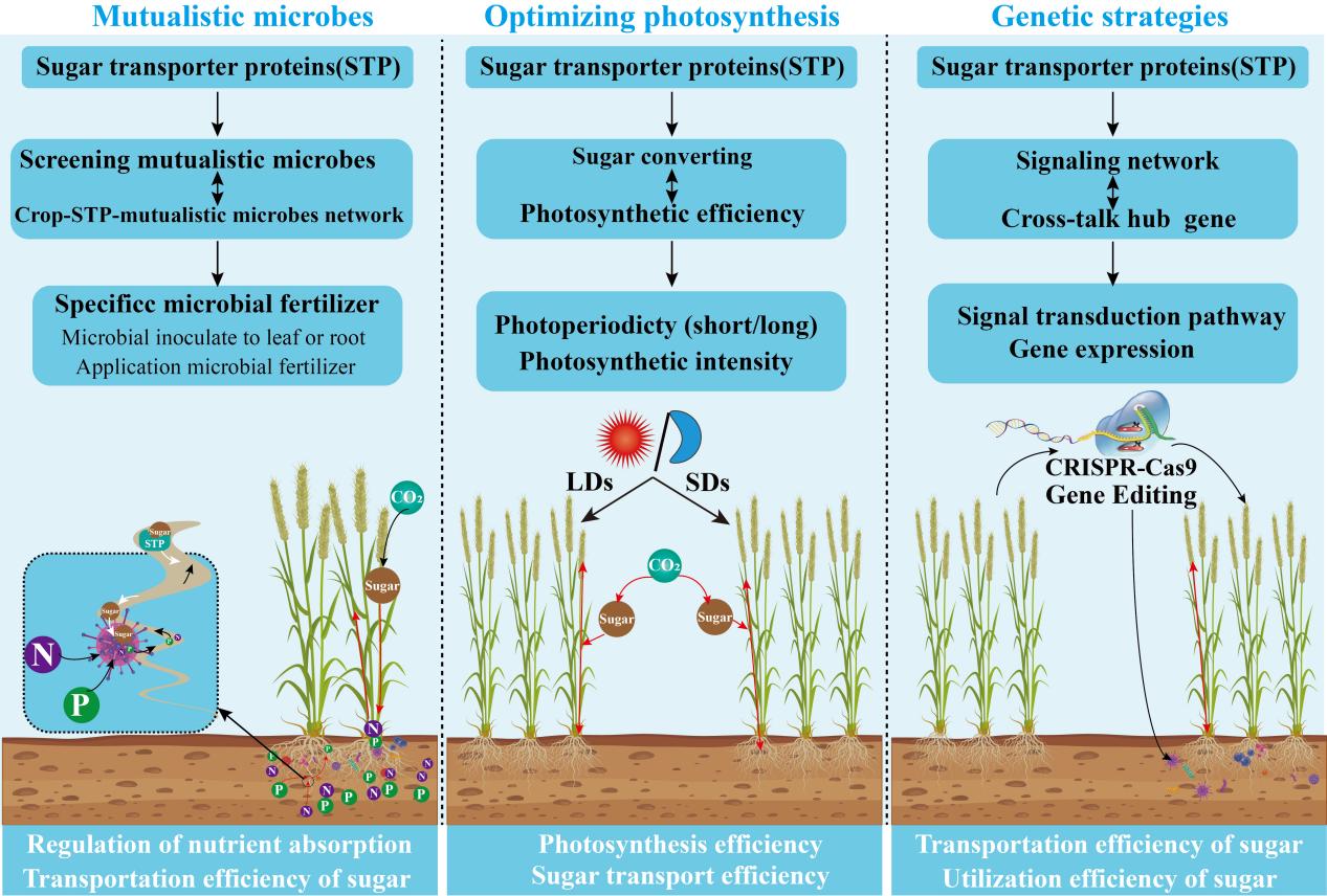 圖4.?通過糖轉(zhuǎn)運蛋白提高作物產(chǎn)量的關(guān)鍵策略