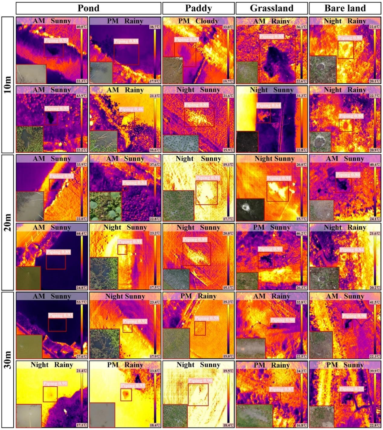 此外,研究還驗(yàn)證了模型在暴雨、夜間及植被遮擋場(chǎng)景下的魯棒性,為全天候監(jiān)測(cè)提供支撐。其突出優(yōu)勢(shì)表現(xiàn)為:一是全天候適應(yīng)性。熱紅外成像突破可見(jiàn)光局限,可探測(cè)植被或水體下隱蔽險(xiǎn)情隱患,夜間及雨天仍保持高精度。二是高效實(shí)時(shí)性。邊緣計(jì)算使無(wú)人機(jī)在飛行中即時(shí)分析數(shù)據(jù),減少數(shù)據(jù)傳輸延遲,顯著提升了應(yīng)急響應(yīng)速度。三是場(chǎng)景普適性。模型在長(zhǎng)江、淮河、鄱陽(yáng)湖等不同地質(zhì)條件的堤防段均表現(xiàn)優(yōu)異,具備大范圍推廣的潛力。四是模式革新從“人巡”到“機(jī)巡”的轉(zhuǎn)型,大幅降低人力成本與安全風(fēng)險(xiǎn),推動(dòng)了防汛作業(yè)智能化。