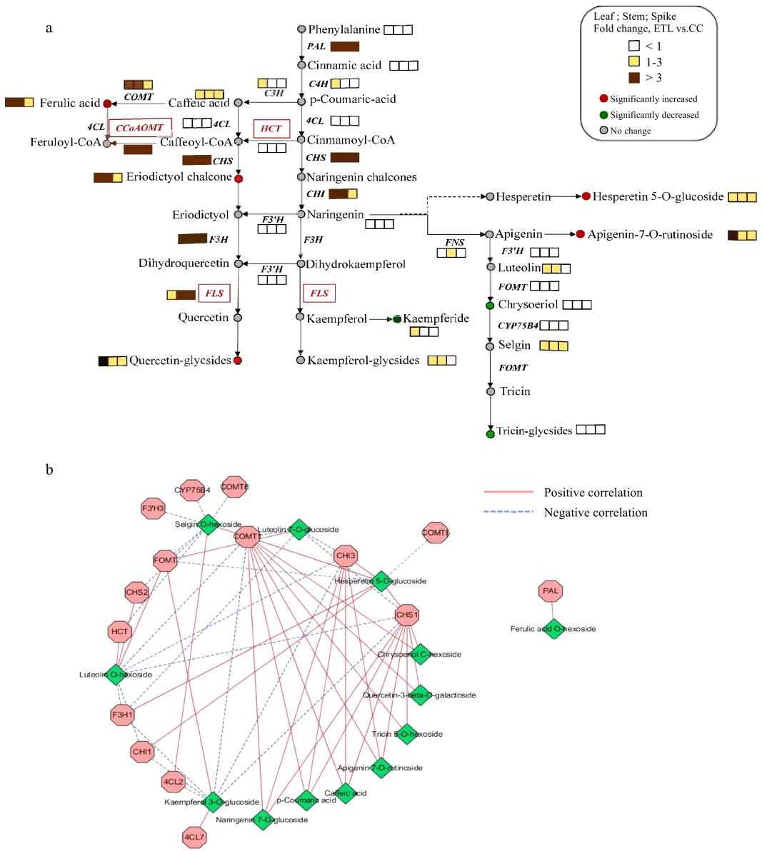 高、中海拔生態(tài)型沙蓬黃酮和苯丙烷合成通路中基因與代謝物的相關(guān)性