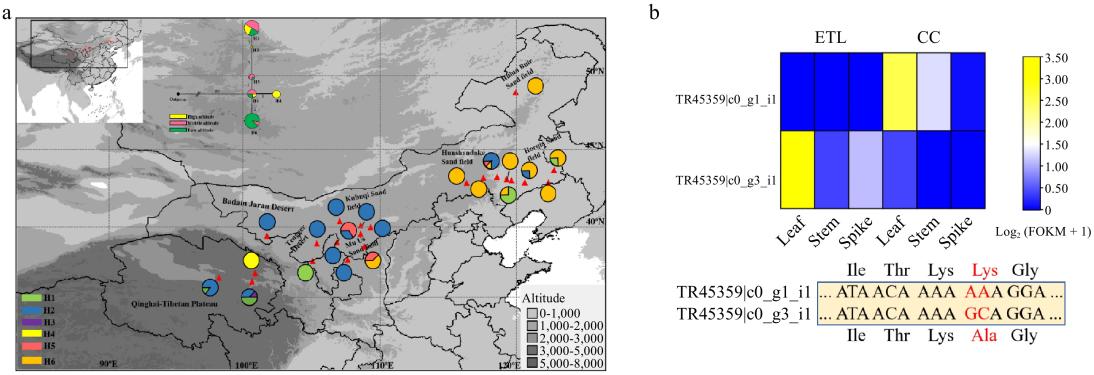 沙蓬(Agriophyllum squarrosum)作為一種廣泛分布于亞洲沙漠的先鋒藥用植物,具有防風(fēng)固沙、改良土壤和豐富藥用成分等多重特點,在青藏高原的多個高寒沙漠中很常見,因此被視為高寒沙漠生態(tài)修復(fù)的理想物種之一。以往研究表明,盡管不同海拔的沙蓬種群在遺傳背景上差異較小,但其代謝物積累存在顯著差異,尤其是高海拔生態(tài)型表現(xiàn)出更為突出的逆境適應(yīng)性和藥用價值,然而,造成這種差異的分子代謝機(jī)制尚未明確。