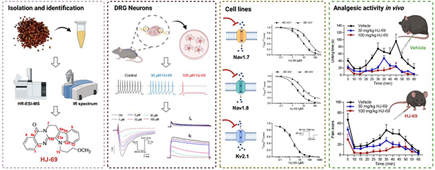 圖2. 花椒來源的離子通道抑制劑HJ-69及其鎮(zhèn)痛活性研究