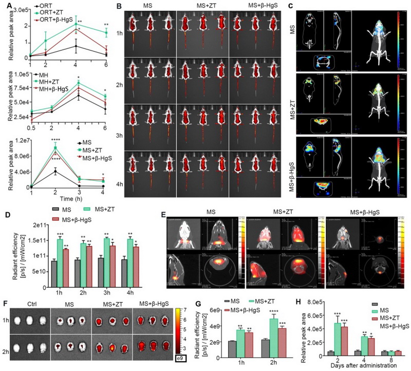 進(jìn)一步體內(nèi)檢測(cè)證實(shí),HgS金屬制劑能夠促進(jìn)多種小分子藥物入腦,尤其是能夠?qū)S-275的入腦量提高3倍以上,并能夠促進(jìn)藥物對(duì)APP/PS1小鼠的空間學(xué)習(xí)和記憶能力的改善作用。體外實(shí)驗(yàn)更直觀的觀測(cè)到,金屬制劑能夠在給藥48h后高效的促進(jìn)藥物進(jìn)入人腦微血管內(nèi)皮細(xì)胞,證實(shí)其通過增量實(shí)現(xiàn)增效的作用機(jī)制。