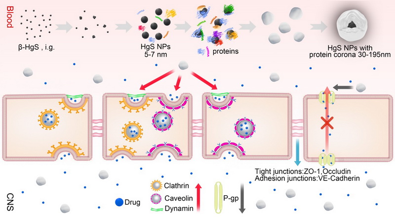 本研究首次揭示了中藏藥核心金屬制劑HgS可以在生物體內(nèi)合成直徑為30-195nm的納米顆粒,并通過調(diào)節(jié)血腦屏障中的內(nèi)吞作用促進(jìn)不同結(jié)構(gòu)類型的藥物進(jìn)入大腦,從而實(shí)現(xiàn)協(xié)同增效作用。特別值得注意的是,我們不僅在體內(nèi)和體外觀察到了HgS納米顆粒的生物合成,而且還獲得了高等生物合成的HgS納米顆粒的最清晰和完整的形態(tài)特征。金屬制劑在中醫(yī)藥中一直是一種獨(dú)特的制劑類型。盡管不斷受到質(zhì)疑,但它們?cè)谂R床應(yīng)用中的獨(dú)特功效從未被取代。這項(xiàng)研究可能為進(jìn)一步揭示金屬制劑的協(xié)同機(jī)制開辟新思路。