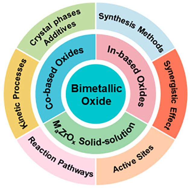 研究表明,該領域目前仍存在亟待突破的瓶頸,包括現(xiàn)有體系低溫活性不足、催化劑組成局限及ZrO2基固溶體的構效關系缺乏理論計算支撐等。未來研究人員將聚焦提高現(xiàn)有雙金屬氧化物催化劑的性能、創(chuàng)建新型催化體系,并對雙金屬協(xié)同作用、活性位點結構、催化反應路徑和動力學過程進行廣泛理論研究。