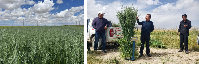 中國科學院西北高原生物研究所高原作物種質(zhì)資源創(chuàng)新與利用學科團組培育出的高燕16和高燕17兩個燕麥新品種于2022年8月22日通過青海省農(nóng)作物品種審定委員會認定備案,兩個新品種無論是草產(chǎn)量還是在種子產(chǎn)量相較原有燕麥主栽品種均具有較大優(yōu)勢,廣受燕麥草種、飼草生產(chǎn)企業(yè)和專業(yè)合作社的好評。2022年,兩個燕麥新品種建立良種繁育基地共1.23萬畝;2023年,兩個燕麥新品種在青海省海西州、海南州、湟中區(qū)等地示范推廣8.83萬畝;2024年,青海奔盛草業(yè)和互助天佑德青稞酒公司在德令哈市尕海鎮(zhèn)和蓄集鄉(xiāng)分別種植0.7萬畝和0.8萬畝,產(chǎn)量和耐鹽堿能力突出,同時在青海海南、甘肅山丹軍馬場、西藏日喀則、阿里和新疆伊犁等地也有較大面積種植,2024年度推廣種植達20.16萬畝。高原作物種質(zhì)資源創(chuàng)新與利用學科團組分別于2020年和2021年申報兩個燕麥新品種的國家植物新品種保護權(quán),其中高燕16于2025年5月1日獲得正式授權(quán)(品種權(quán)號:CNA20201004745),這是研究所獲得的首個國家植物新品種保護權(quán)。此次品種權(quán)的獲得,為高燕16品種的市場化推廣和科技成果轉(zhuǎn)化提供了堅實基礎(chǔ)。