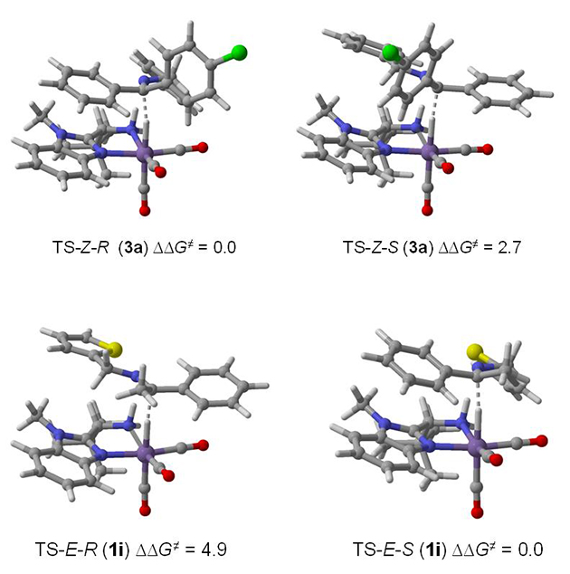 圖2.含雜原子亞胺和雙芳基亞胺的不對稱氫轉(zhuǎn)移過程的過渡態(tài)模型