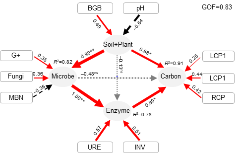 高寒草甸土壤有機(jī)碳及其物理組分響應(yīng)比的結(jié)構(gòu)方程模型