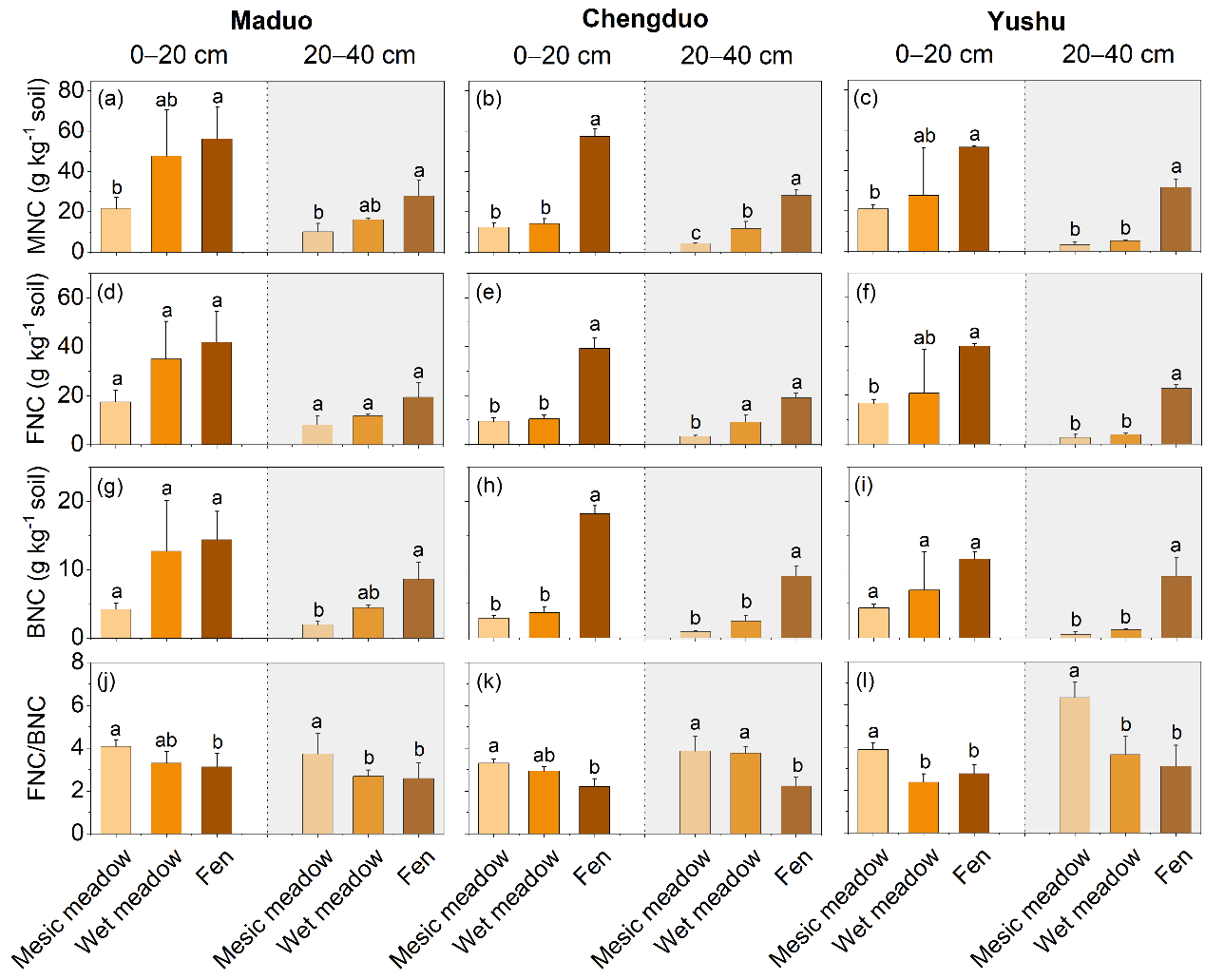 中國科學院西北生態(tài)環(huán)境資源研究院李玉強研究員團隊,在青藏高原沿高寒草甸-濕地連續(xù)體設置了27個采樣點,通過測定氨基糖等指標,系統(tǒng)揭示了水文變化對土壤微生物殘體碳和顆粒有機碳積累及其對土壤有機碳貢獻的影響。