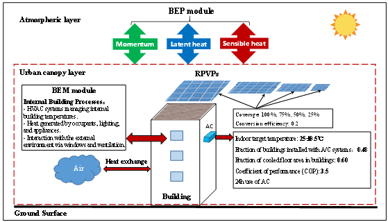 中國(guó)科學(xué)院西北生態(tài)環(huán)境資源研究院高曉清研究員團(tuán)隊(duì)聚焦我國(guó)典型復(fù)雜地形城市——蘭州,在熱浪事件背景下,利用國(guó)際先進(jìn)的中尺度氣象模型(WRF)并耦合城市建筑效應(yīng)參數(shù)化與建筑能耗模型(BEP+BEM),精細(xì)模擬了不同覆蓋率(25%、50%、75%、100%)下的屋頂光伏對(duì)城市熱環(huán)境的多維度影響。