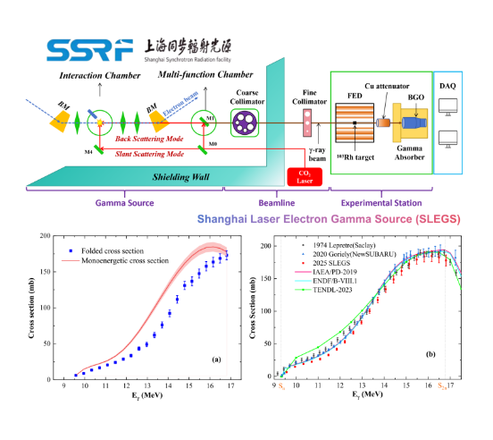 圖2 :SSRF SLEGS線站光核反應實驗布局、103Rh(γ,n)反應實驗截面值與評價庫的比較