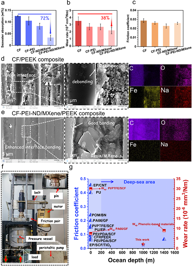 ?圖3.強韌界面增強復合材料在模擬深海環(huán)境中的摩擦學性能