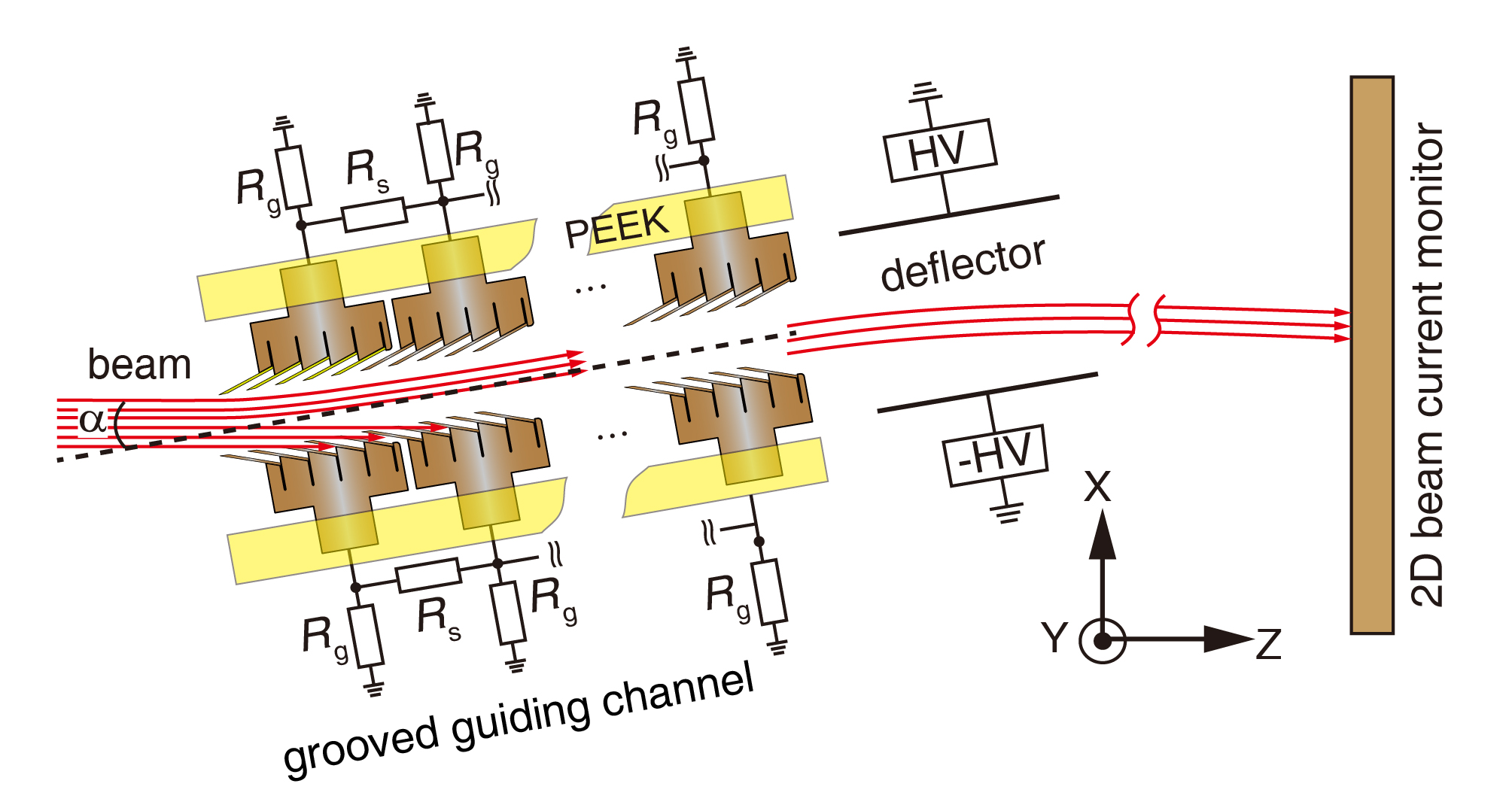 然而,長(zhǎng)期以來(lái)這一構(gòu)想面臨核心瓶頸:相關(guān)技術(shù)此前僅對(duì)低能離子有效,且工作流強(qiáng)僅在飛安至皮安量級(jí)。對(duì)于更高能量的離子束,導(dǎo)向電場(chǎng)會(huì)過(guò)早飽和;對(duì)于更強(qiáng)流的離子束,導(dǎo)向電場(chǎng)往往不穩(wěn)定。這些問(wèn)題均導(dǎo)致自適應(yīng)導(dǎo)向失效,制約了該技術(shù)走向?qū)嶋H應(yīng)用。