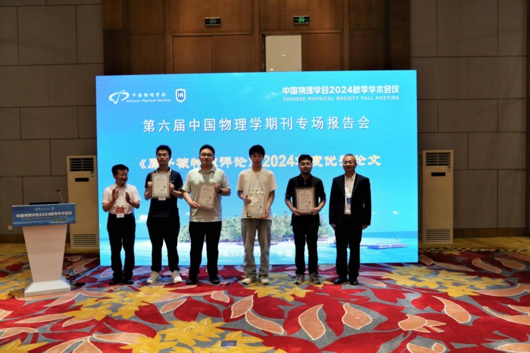中國(guó)物理學(xué)期刊專場(chǎng)報(bào)告會(huì)已連續(xù)舉辦五屆。本屆專場(chǎng)報(bào)告會(huì)由中國(guó)物理學(xué)會(huì)出版工作委員會(huì)主辦,中國(guó)科學(xué)院物理研究所/海南大學(xué)承辦,《物理學(xué)報(bào)》《中國(guó)科學(xué): 物理學(xué) 力學(xué) 天文學(xué)》《科學(xué)通報(bào)》《原子核物理評(píng)論》等20多家國(guó)內(nèi)物理學(xué)相關(guān)期刊共同舉辦。《原子核物理評(píng)論》編輯部首次參加此項(xiàng)專題活動(dòng)。近代物理所黨委原書記趙紅衛(wèi)院士、副所長(zhǎng)王猛研究員為獲得《原子核物理評(píng)論》2024年度優(yōu)秀論文的作者代表頒獎(jiǎng)。中國(guó)科學(xué)技術(shù)大學(xué)杰出講席教授、上海科技大學(xué)校長(zhǎng)封東來(lái)院士、近代物理所趙紅衛(wèi)院士以及物理研究所曹則賢研究員分別做了特邀報(bào)告。