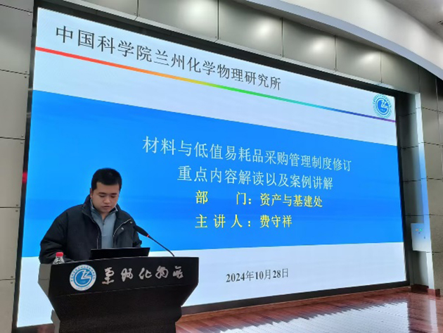 資產(chǎn)與基建處處長(zhǎng)陳建介紹了新修訂的資產(chǎn)采購(gòu)與管理相關(guān)制度,陳明忠作了題為“固定資產(chǎn)管理及設(shè)備采購(gòu)制度重點(diǎn)內(nèi)容解讀及相關(guān)案例分享”的報(bào)告,分析了研究所資產(chǎn)管理形勢(shì),結(jié)合案例解讀了新修訂的固定資產(chǎn)采購(gòu)制度。費(fèi)守祥作了題為“料與低值易耗品采購(gòu)管理制度修訂重點(diǎn)內(nèi)容解讀以及案例講解”的報(bào)告,介紹了材料與低值易耗品采購(gòu)、稀貴金屬和貴重試劑、易制毒化學(xué)品和易制爆化學(xué)品管理,分享了相關(guān)案例。