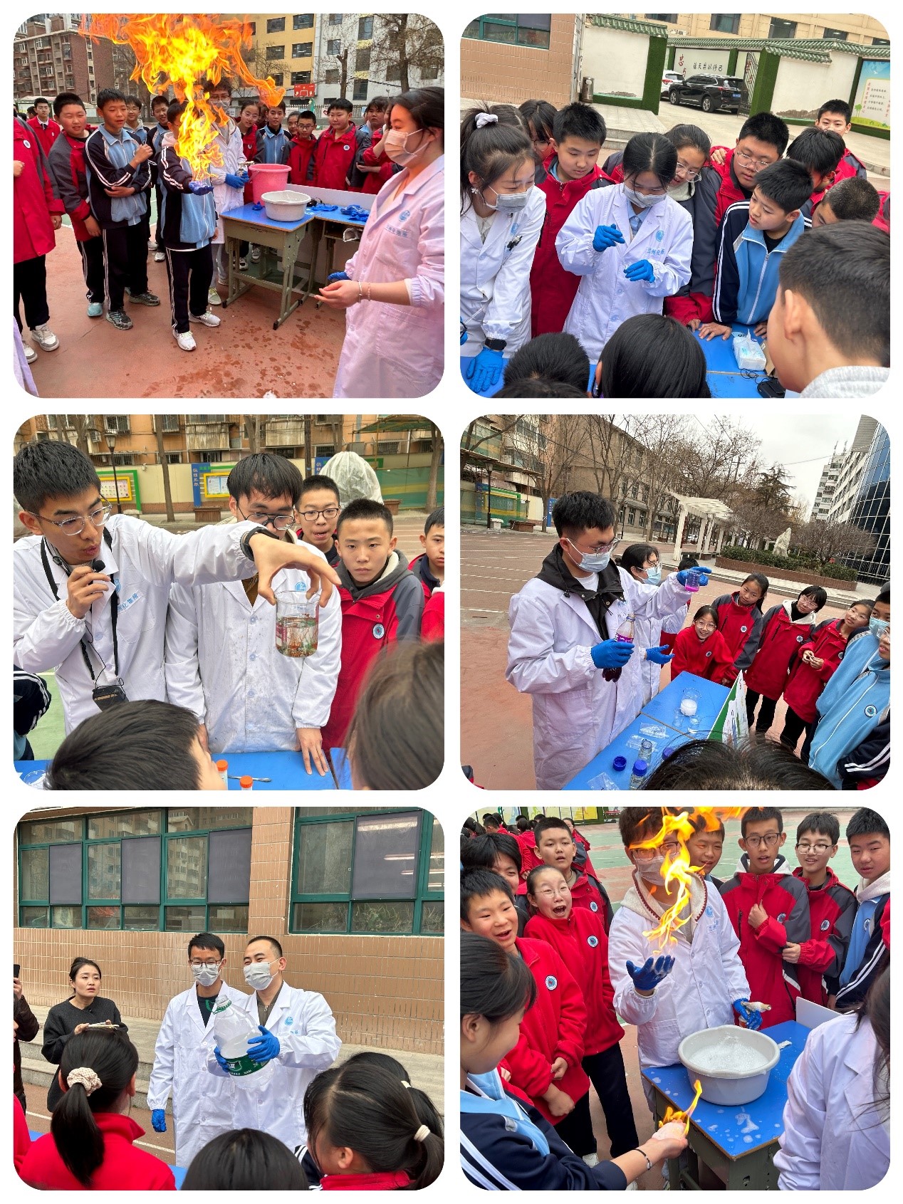 活動(dòng)共組織10個(gè)研究生科普志愿小組現(xiàn)場(chǎng)演示科學(xué)小實(shí)驗(yàn),包括“滴水成膠”“會(huì)呼吸的藍(lán)精靈——揭秘碘鐘反應(yīng)”“神奇的摩擦發(fā)光”“百變汽水”“火山爆發(fā)”“紫色流星雨”“魔力棒棒糖”“‘瓶’空造云”“水中花園”和“掌心的神奇火焰”。演示過(guò)程中,科普志愿者們耐心講解實(shí)驗(yàn)現(xiàn)象隱含的科學(xué)原理,用深入淺出的語(yǔ)言將抽象的概念具象化,讓復(fù)雜的化學(xué)原理變得通俗易懂。同學(xué)們親自動(dòng)手操作實(shí)驗(yàn),觀察、體驗(yàn)了科學(xué)探究的樂趣和挑戰(zhàn)。