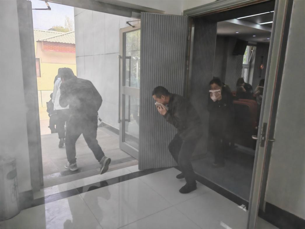理論培訓(xùn)后,參訓(xùn)人員在政安消防工作人員指導(dǎo)下開展實(shí)戰(zhàn)演練。模擬場(chǎng)景設(shè)定為學(xué)術(shù)報(bào)告廳因電路短路引發(fā)火情,濃煙迅速蔓延。隨著警報(bào)響起,應(yīng)急指揮組立即啟動(dòng)預(yù)案,疏散引導(dǎo)員按分工組織人員低姿捂鼻,沿安全通道撤離至指定集合點(diǎn)。隨后,又組織人員使用干粉滅火器對(duì)模擬火源進(jìn)行撲滅。整個(gè)演練過程響應(yīng)迅速、分工明確,快速進(jìn)行安全疏散。