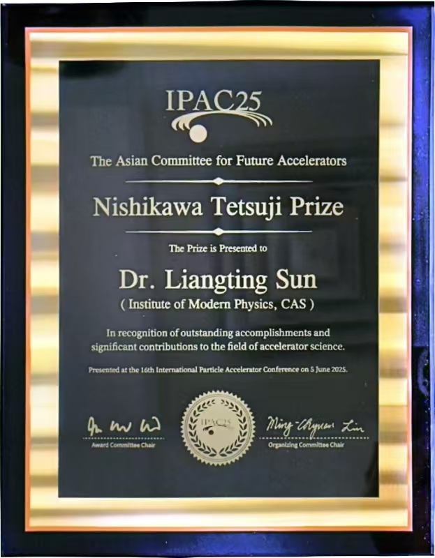 近代物理所孫良亭研究員榮獲2025年度國際粒子加速器獎(jiǎng)“西川哲治獎(jiǎng)”(Nishikawa Tetsuji Prize)
