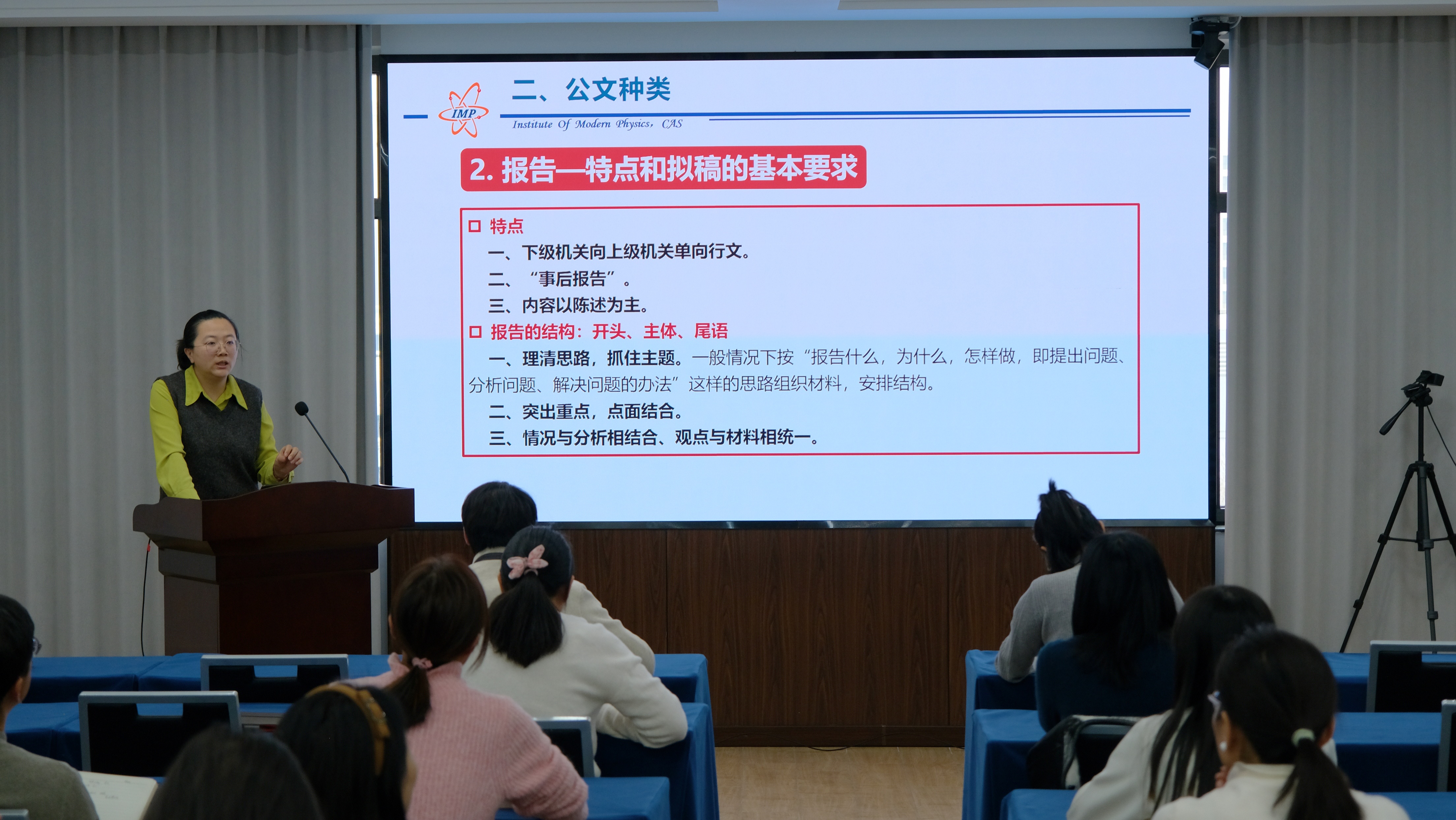 近日,為進(jìn)一步提升研究所公文處理工作的標(biāo)準(zhǔn)化與規(guī)范化建設(shè),全面提升公文寫作與管理水平,中國(guó)科學(xué)院近代物理研究所組織舉辦了公文處理專題培訓(xùn)。