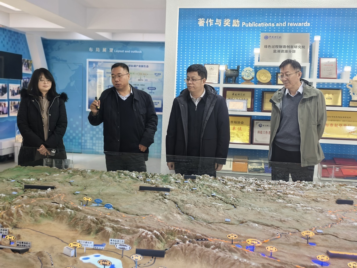 萬士林一行先后參觀了青海鹽湖所科技成果展廳及地質與環(huán)境實驗室展覽館,詳細了解了研究所的歷史沿革、科研平臺建設、人才隊伍構成、重要科研成果及在鹽湖資源開發(fā)利用方面的研究進展。