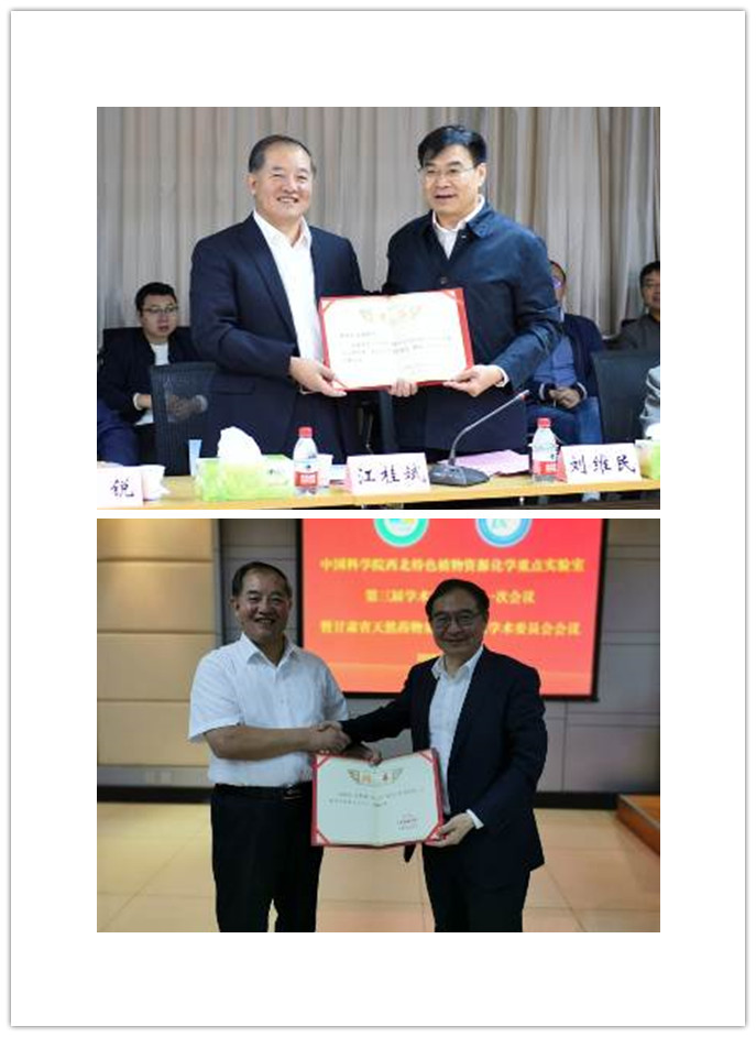 (上圖:劉維民頒發(fā)院重點實驗室學(xué)委會主任聘書 下圖:傅小鋒頒發(fā)甘肅省天然藥物重點實驗室學(xué)委會主任聘書;)