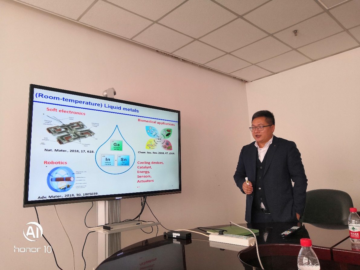 10月19日,深圳大學(xué)周學(xué)昌教授應(yīng)邀到蘭州化物所進行學(xué)術(shù)交流,并做了題為“室溫液態(tài)金屬與韌性凝膠:從液滴到柔性電子”的學(xué)術(shù)報告。