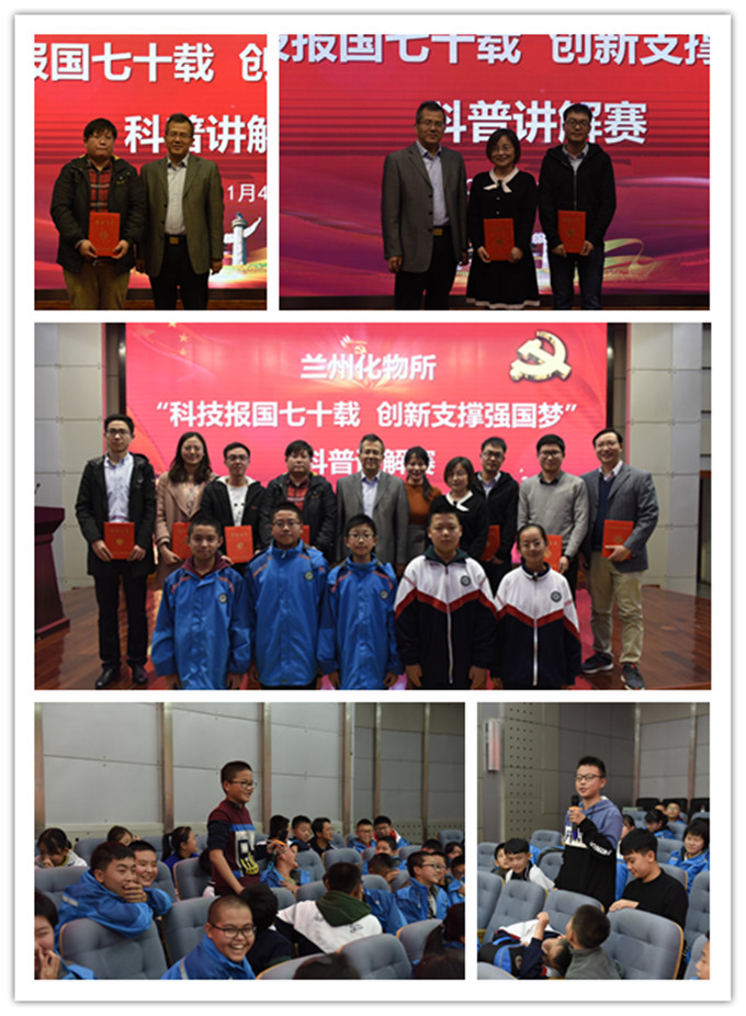 為慶祝中華人民共和國成立70周年和中國科學院建院70周年,弘揚科學精神,11月4日,中國科學院蘭州化學物理研究所舉辦了“科技報國七十載創(chuàng)新支撐強國夢”科普講解賽。本次講解大賽邀請中科院蘭州分院中學七年級師生近300多人到場聆聽。研究所共有4名青年科研人員和4名研究生參加比賽,5名學生代表和參賽選手共同擔任評委。